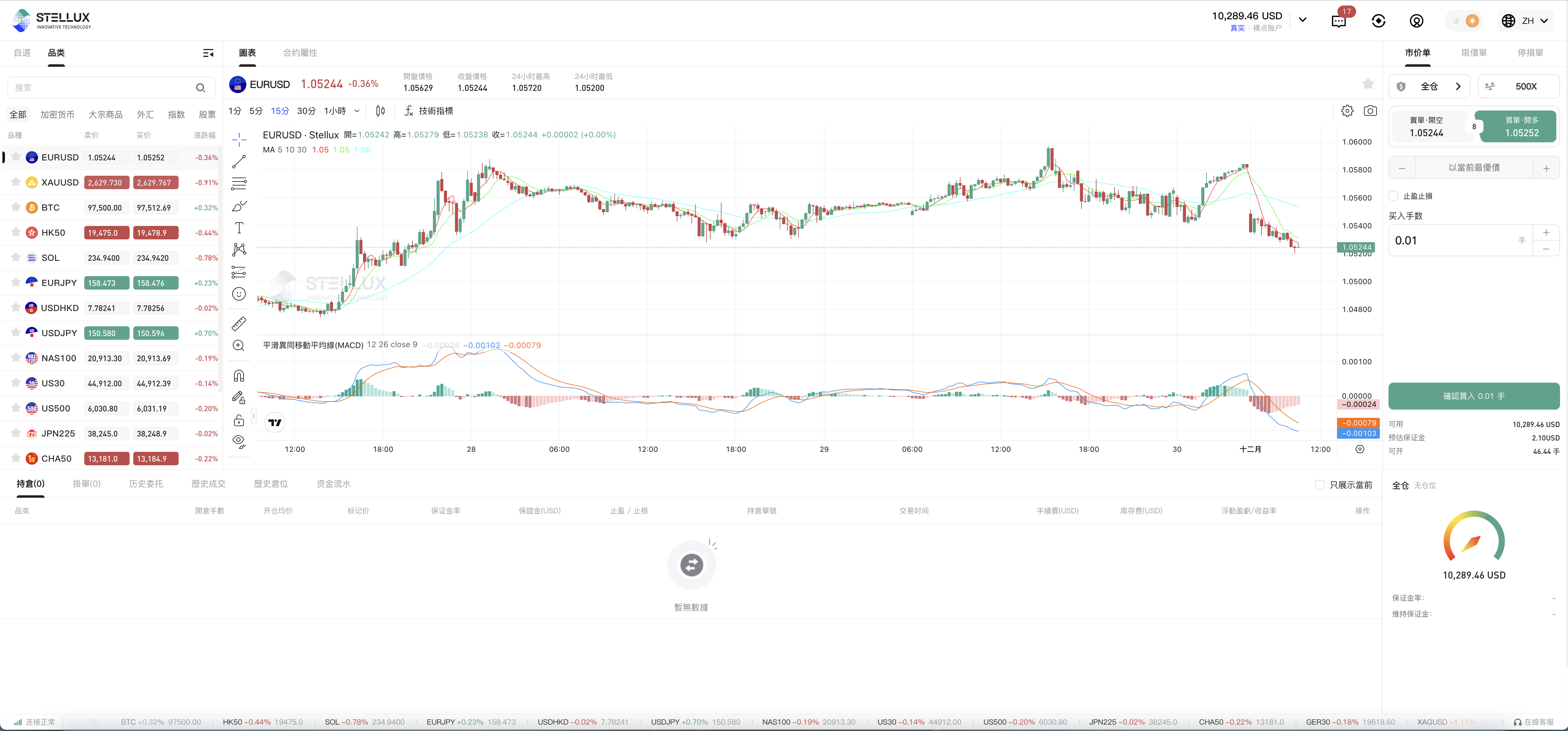 Stellux 可以使用任何网络浏览器进行金融市场交易。它适用于所有操作系统和浏览器,同时不需要安装额外软件。传输的所有数据都经过安全加密。