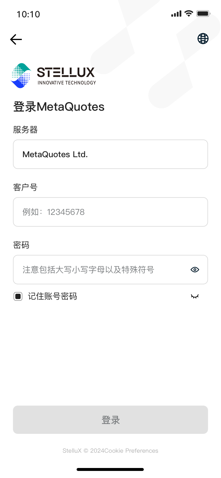 密码 ― 账户的主密码或只读密码。如果您忘记密码或在尝试连接到您的账户时遇到其他问题,请联系您的交易商。要打开您交易商的详细联系方式,请点击连接表格下方的“忘记密码?”。